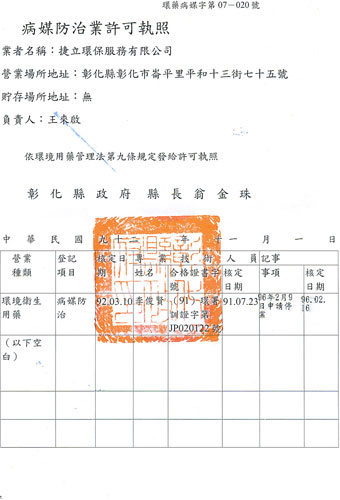 病媒防治許可可執照
